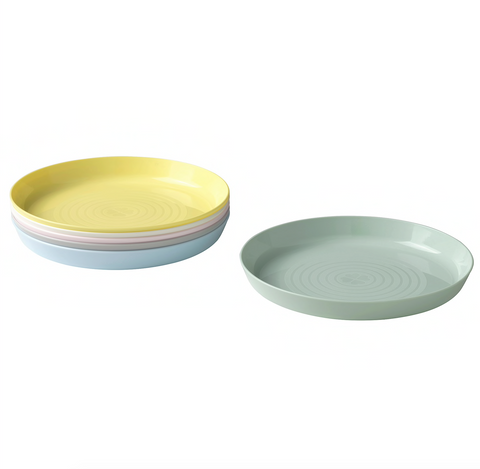 Bright and cheerful colours so everyone gets to pick their favourite. The plastic won’t break and it’s harmless – no additives. A sustainable alternative to disposable tableware because it can be re-used.Microwave-safe; heat food up to 100°C.