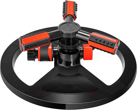 【POWERFUL IRRIGATION】- Garden Lawn Sprinkler 360 degree automatic rotating water spray with 3 adjustable swivel arms and 45 built-in nozzles with different angles to provide powerful watering for every corner of the garden; There are 3 sets of spray holes on the arm (4/5/6 holes respectively), which can be freely combined